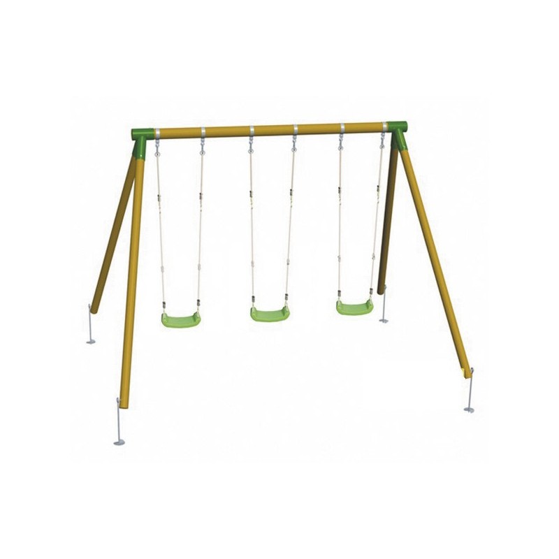 Le plaisir est garanti grâce à cette Triple Balançoire Etna Masgames . Cette balançoire est fabriquée en bois de grande qualité avec traitement spécial pour résister aux intempéries. La coupe circulaire est plus résistant et ne se fissure pas, ce qui rend le bois plus sûr pendant plus de temps. Cette balançoire inclut 3 sièges en plastique de grande qualité avec une corde synthétique qui supporte jusqu'à 70 kilos. En plus de cela, elle est très facile à assembler. Dimensions approximatives de la balançoire: 2,21 m de haut par 3,43 m de large et 1,94 m de profondeur. L'article est fabriqué avec les meilleures qualités et les meilleures finitions, ce qui le rend le lieu idéal pour les plus petits de la maison et leurs amis. Âge recommandé: entre 3 et 12 ans.