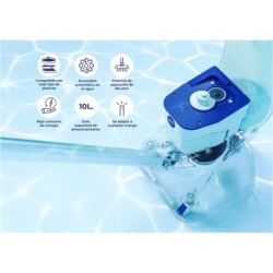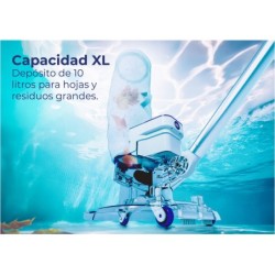 Passez au nettoyage sans contrainte en vous procurant ce puissant et efficace Nettoyeur électrique à batterie Leaf Eater pour piscines et spas de Gre. Un nettoyeur très spécial pour votre piscine privée, grâce à sa conception, son entretien facile et son design moderne. Avec une grande capacité d'aspiration, il est idéal aussi bien pour les grandes feuilles que pour le sable de plage. Le pack comprend : - 1 nettoyeur électrique Leaf Eater avec batterie lithium rechargeable (7,4 V / 5000 mAh), fonction sans fil, filtre d'une capacité de 6 litres, système de collecte des déchets de grande et très petite taille comme le sable, conception légère et très résistante et autres avantages d'utilisation. Informations utiles sur l'article : - Âge recommandé pour l'utiliser : + 16 ans. - Dimensions approximatives du nettoyeur : 26,1 cm de haut, 26 cm de large et 24,4 cm de profondeur. - Zones de nettoyage : fond, parois et ligne d'eau. - Poids approximatif de l'article : 3,3 kg. - Niveau de filtration : 150 microns. - Puissance : 24,4 W. - Capacité d'aspiration : 90 l / min. - Autonomie approximative de la batterie : 75 minutes (temps de charge : 5 heures). - Se connecte à une perche télescopique standard (non incluse dans le pack).
