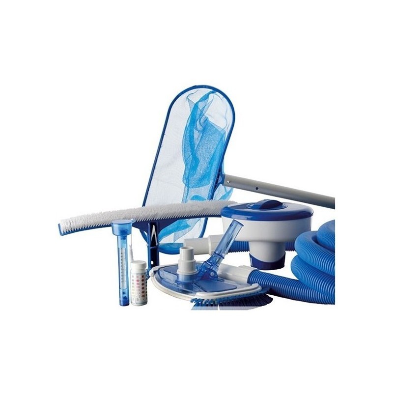 Matériel d'entretien GRE COMPLET AR20641 Caractéristiques : - Idéal pour les piscines hors sol élevées. Comprend: - Tuyau (6 m de long.) Avec une connexion 38 mm - Nettoyeur de fond pour perche - Perche 3 sections - Doseur ovale - Bandes de contrôle (tester réaction, une boite) - Épuisette de fond - Brosse liner - Thermomètre flottant