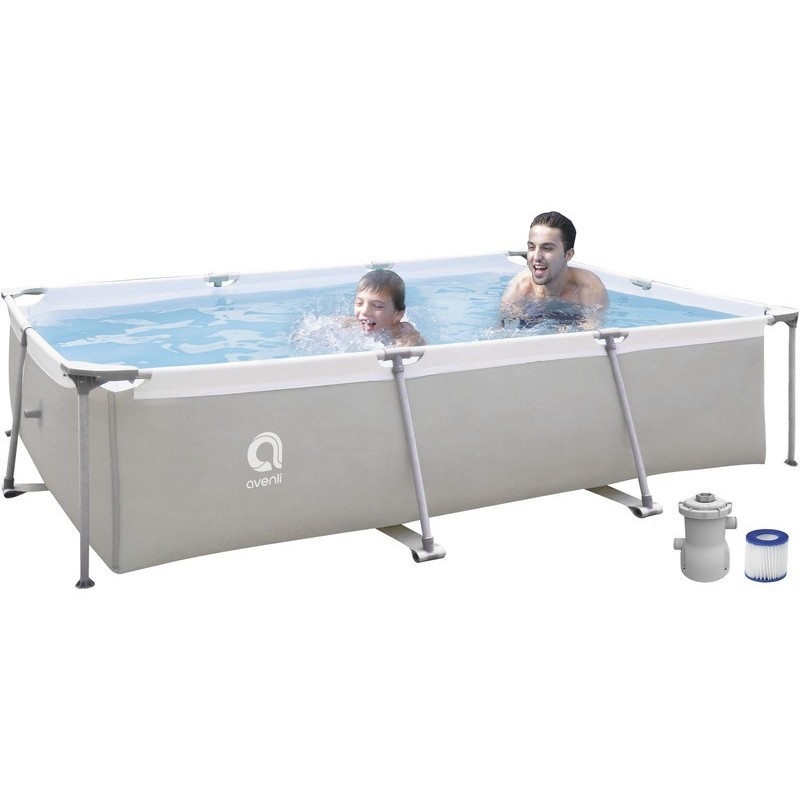 Procurez-vous la Piscine super rectangulaire en acier avec système de filtrage de Jilong parce que l'été arrive et que la meilleure façon de le combattre est sous l'eau ! Cette piscine amovible de taille parfaite s'adapte parfaitement à votre jardin ou à votre terrasse. Vous devriez l'acquérir pour profiter de moments rafraîchissants et amusants avec vos amis ou votre famille. Ce pack incroyable comprend un purificateur d'eau pour que l'eau soit parfaite. Il ne vous reste plus qu'à trouver un endroit où le mettre, le remplir et commencer à nager ! Âge recommandé : + 6 ans. Informations complémentaires : - Mesures approximatives de la piscine assemblée : 300 cm de long, 207 cm de large et 65 cm de haut. - Capacité approximative en eau (à 90 %) : 3 701 litres. - Temps estimé pour l'installation : 30 minutes. - Aucun outil n'est nécessaire pour le montage. - Matériau LamTech de haute qualité et résistant. Inclus dans le pack : - Piscine Super Rectangulaire détachable en acier de couleur grise - Purificateur à filtre à cartouche avec un débit de 1 136 l/h. Tension 220-240V. Réf. 29P414EU. - Cartouche de type S pour le filtre incluse. Réf. 29P481. Lorsque vous passez votre commande, n'oubliez pas de spécifier le modèle désiré dans notre section de commentaires. Dans le cas contraire, nous vous en enverrons un au hasard.