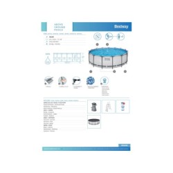 PISCINE CIRCULAIRE HORS SOL BESTWAY ref.56438 457x122 cm Fantastique pour le jardin ou la terrasse. Haute résistance Description: - Capacité :16.015 Litres (approx.) - Dimensions : 457 x 122 cm (diamètre x hauteur) Comprend : - Epurateur filtre à cartouche débit 3.028 Litres/Heure Réf. 58386 (Nécessite: filtres à cartouche Réf. 58094, inclus) - Liner TriTech, de 3 couches poliéster et membranes PVC, résistant aux produits chimiques et traité anti-UV - Echelle de sécurité 4 échelons - Tapis de sol - Bâche de protection ajustable - Rustines de réparation - DVD d'instructions