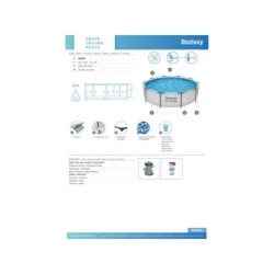 PISCINE TUBULAIRE CIRCULAIRE BESTWAY ref.56408 305x76 cm Idéale pour jardin ou terrasse. Grande stabilité. Description : - Capacité :approximative 4.678 litres - Dimensions : 305 x 76 cm (diamètre x hauteur) - Soupape d’évacuation de l’eau - Tubes en acier anticorrosion - Simple à installer Inclus : - Épurateur Réf. 58381 à cartouches Réf. 58093 qui permet de filtrer 1.249 litres/heure (inclus cartouches) - Liner Tritech, 3 liners en polyester polylaminé PVC résistants aux produits chimiques et traitement anti-ultraviolet - Rustines de réparation - Supports Verres