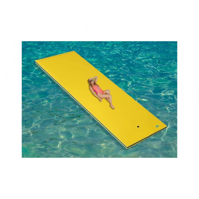 Fabuleux tapis enroulable flottant pour profiter d’une journée à la plage sur l’eau. Ce fantastique tapis flottant est un complément idéal pour pouvoir profiter sur l’eau aux côtés de la famille et des amis, il est de couleur bleu et jaune, avec triple couche de polyéthylène renforcé de polyester, qui permet de supporter sur l’eau jusqu’à 600 kg de poids. Vous pouvez le transporter de manière simple lorsqu’il est enroulé, et il pèse seulement environ 12 kg. Sa capacité est de 550 cm de long, pour 180 cm de large et 3,3 cm d’épaisseur, il est préparé pour supporter 8 à 10 personnes. Il dispose d’espace pour s’allonger, s’assoir, jouer et bien plus. De plus, il dispose d’une aire d’ancrage pour que vous l’accrochiez à une zone sûre et ainsi éviter qu’il ne se déplace avec la marée. La corde n’est pas comprise, elle s’achète séparément. Une manière sûre de flotter sur la mer en compagnie de votre famille et amis, profitant de la brise, des baignades et du confort avec tout la sécurité requise. Âge recommandé : + 6 ans.